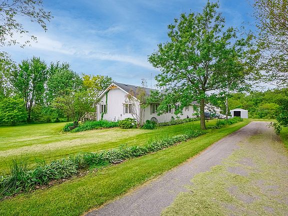 Tucked on just over 8 acres you will have your own private oasis...from 2 fishing ponds to several acres of woods perfect for hunting. This ranch home has an updated galley kitchen with all new stainless steel appliances and space for a quaint table and chairs. The spacious living room is currently shared with dining space and has a cozy wood burning stove. The master bedroom and bathroom are on one side with the other two bedrooms and bathroom are on the other side, both with sliding doors to the deck. The open staircase leads to the large unfinished basement with endless possibilities. In the basement there is a walk out door to go out and enjoy the yard. Currently the seller has 2 coy ponds near the back deck. The attached two car garage can be accessed from the kitchen. There is also an additional 2nd garage approx 20x30 with electric and concrete floor. This property has tons of potential and is incredibly private and peaceful, make some time to take a look!