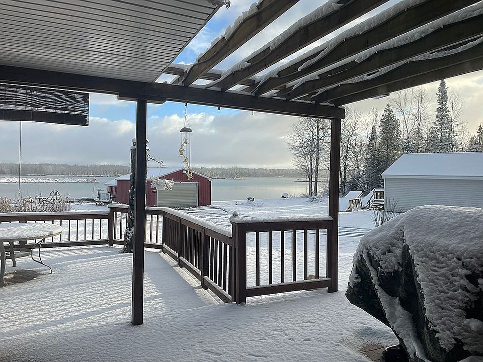Lovely colonial home siting at the end of the 9 mile rock cut for the down bound boats on the St. Mary’s River! Experience boat watching at its best from your living room, dormer, or beautiful multi level decking. The ships are so close you can converse with the deck hands from the end of the dock if you want! Barbeau is a fun, small community with its own full service restaurant and is less than 25 minutes from everything you need in the Soo.