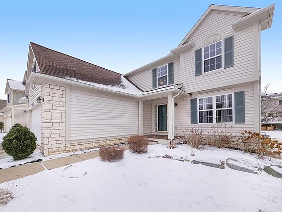Light filled two story home features a living room with vaulted ceiling, family room with custom gas fireplace, dining room, and breakfast nook with hardwood floors adjacent to open kitchen. First floor laundry/mud room has closet and extra cabinets. Spacious master suite boasts walk-in closet, spa tub, separate shower. Finished basement includes a built in loft/play area and space for recreation room or entertaining. Recent improvements include brand new stainless appliances, newer main level carpet, exterior wood trim and deck painted (2020), hot water heater and home humidifier (2019), newer washer, dryer, microwave, and a 2013 roof.