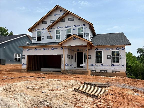 New construction with unfinished basement and large side yard. Craftsman style is being built on the last lot in this small Clemmons neighborhood built by Arden Homes. Low maintenance exterior is James Hardie Fiber Cementous Siding. With over 2600 sqft, there is no wasted space. Main level offers open floor plan, 9 ft ceilings and sandalwood oak color engineered hardwoods. Great room with gas fireplace sliding doors to screen porch. Pocket office or homework space off foyer with french doors. Main level primary bedroom, primary bath has dual vanity and walk-in shower. Kitchen features shale gray cabinets, quartz countertops with stainless appliances. Upper level includes 3 bedrooms, 2 baths and loft area. Great rocking chair front porch. Add an unfinished walk out basement for futre expansion! You don't want to miss this beautiful home! Measurements & info taken from builder plans/specs, subject to change. {BRANDT PLAN - ELEVATION C}