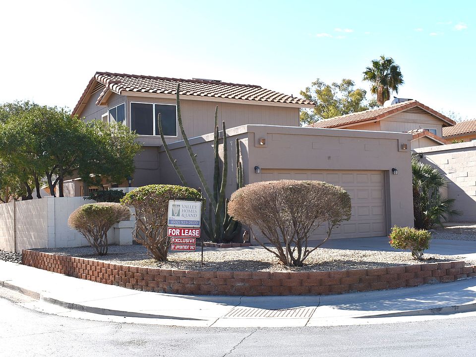North Canyon HS area. Sharp 2 story home with recent paint & flooring. Master & 2nd BR upstairs with the 3rd BR downstairs and 2nd bath. Dining rm off kitchen. Huge great rm with soaring ceilings. Ceiling fans thru out. Includes washer, dryer and fridge. Corner lot for extra privacy. Covered patio. Desert front & back for easy maintenance. Bubblers & timer for landscaping. 2 car garage. Great area will not last! NOT ON MLS , exclusive listing. $40 non refundable rental application fee per applicant. $ 2100.00 security deposit, $400 cleaning deposit, $300 pet deposit with owner approval. Shown by appointment only.