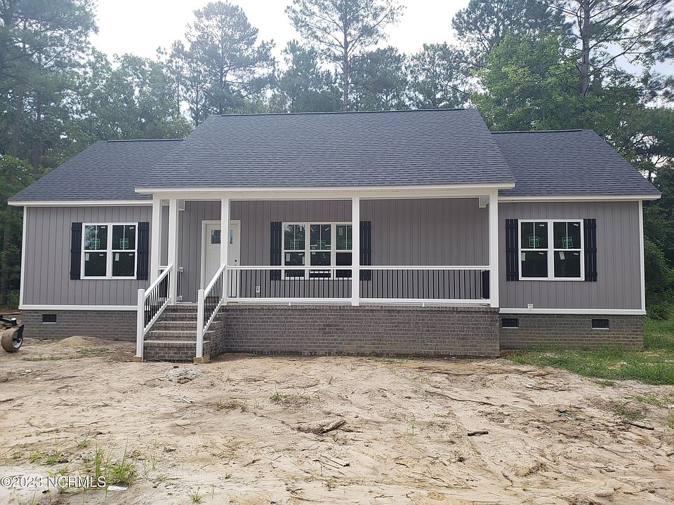 This is a gorgeous well-built 3-bedroom home. The exterior features a covered front porch, vinyl wrapped posts, large back deck, and grey board and batten vinyl. The interior of the home includes: LVP flooring,handmade cabinetry, stainless steel appliances, and granite countertops. The master bedroom is strategically located opposite from the other bedrooms and features a roomy walk-in closet. The master bathroom includes a double vanity, separate walk-in shower, spacious tub, and tile covered walls. Adjacent to the other two bedrooms is a full bath with a tub/shower. I would be remiss if I didn't mention the beautiful bay window in the dining room, fireplace, and the separate laundry room with a sink and cabinet, that makes this home complete.