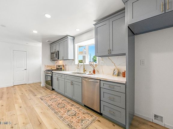 This stunning home sits on a corner lot with dual RV access, offering plenty of space and convenience. It features a brand new kitchen with beautiful modern touches, perfect for cooking and entertaining. The newly remodeled bathrooms, upgraded flooring and fresh paint throughout provide a contemporary, move-in ready feel. The expansive backyard is a highlight, with ample room for an accessory dwelling unit (ADU) making it a great investment opportunity or a perfect space for additional living.