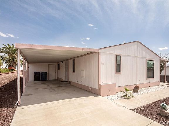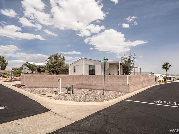 Come home to Monte del Sol! This 2 bedroom 2 bath manufactured home includes the lot. Enjoy large corner lot, landscaped with views of surrounding mountains. Open concept. Value priced to sell. Common amenities include pool, spa, greenbelt, bbq area all for the low HOA dues of $60.00 per month! Covered parking, newer hvac. Perfect & affordable place close to shopping, casinos and the Colorado River. Call today.