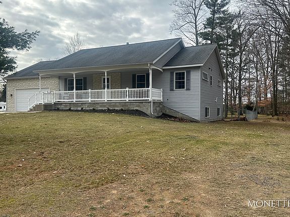 Welcome to your dream ranch-style home located on a private road. Step inside to discover an inviting interior with a beautifully designed open floor plan seamlessly connecting the living, dining, kitchen areas, and extending out to a covered back porch overlooking a sprawling backyard. The well-appointed kitchen features modern appliances, ample cabinetry, and generous counter space. There are three generously sized bedrooms, and two full bathrooms with a third plumbed and ready for customization. The primary bedroom is a sanctuary of its own, complete with an en-suite bath for added privacy and relaxation. The fully finished basement with painted flooring has plenty of space for a rec room, workshop, or a family room and is plumbed for a third bathroom ready for your customization. A drive through garage allows for easy access to the backyard. The furnace (2022) and AC (2023) have been recently replaced and the refrigerator, washer, and dryer have a transferable warranty. This home offers a serene ambiance while being just moments away from the vibrant energy of nearby amenities and attractions.