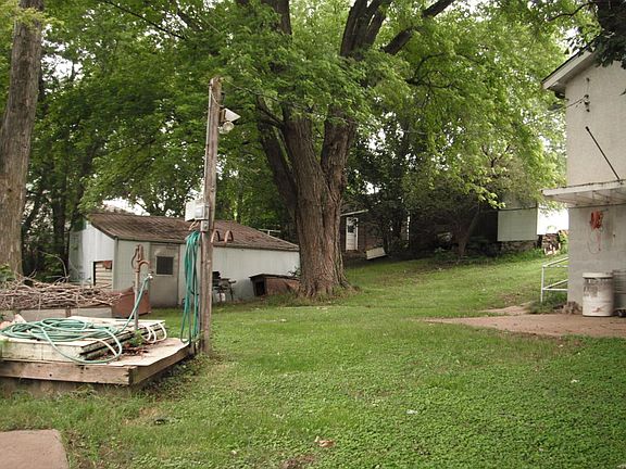 Beautiful 1.12 ac treed lot just outside the city limits. outbuildings include a garage/shop with pit, shed and play house. Septic was new in 07, newer central air unit and roof. House needs a total rehab. Basement wall anchored in 2011. Boiler heat.