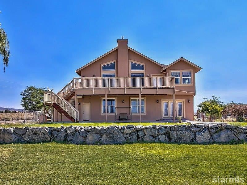 Please feel free to CONTACT OWNER (775) 690-5274. Panoramic Views from Mt. Rose to Kirkwood, from this Tuscan-style villa! Newer custom home on 5 level acres, with playground, fire pit amphitheater, 5,000 sq. ft. steel framed storage area/workshop with parking for several vehicles! Featuring: granite slab counters, cherry cabinetry, cherry hardwood floors in kitchen & dining room, stainless steel appliances, instant hot water, double ovens, gas cooktop & more! open floor plan, designer master suite, w/granite counters, travertine tiled shower, large jetted tub!! Please feel free to CONTACT OWNER (775) 690-5274