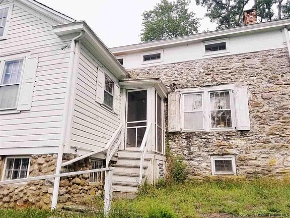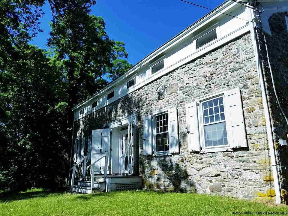 A rare offering of a late 1700s stone home with 3 barns on 53 acres. Solid bones await your desire to renovate and restore. Much of the original character of the early settlers remains, wide plank board floors, high wood beamed ceilings, 6 over 6 and 12 over 12 windows, massive stone/brick fireplace, Federal style doors/frames. The house offers a first floor with an oversized added-on kitchen with the original stone wall exposed, a center hall foyer with staircase, small den/library and a massive dining room and living room, 9 ft fireplace, built in shelfs and a side screened in porch. The second floor has 4 bedrooms with eyebrow windows and two baths. The three oversized outbuildings include a hen house, horse/cattle barn and an oversized mixed use barn which could easily fit multiple autos or equipment. The two seater outhouse also remains. About 3 acres are cleared fields, the balance is wooded. The property consists of 3 parcels. The front parcel with the house and outbuildings is 29.40 acres (Rosendale SBL 62.3-5-10). Behind and adjoining that parcel is a 9.10 acre parcel (Marbletown SBL 62.3-3-33) which takes you to the Rail Trail. The third is a 14.9 acre parcel (Marbletown SBL 62.3-3-34) which could easily be subdivided and/or built on. It has frontage on Coxing Rd (between 35 & 55) and adjoins the Rail Trail. So many options and opportunities for subdivision of land.