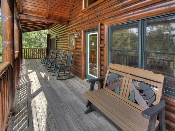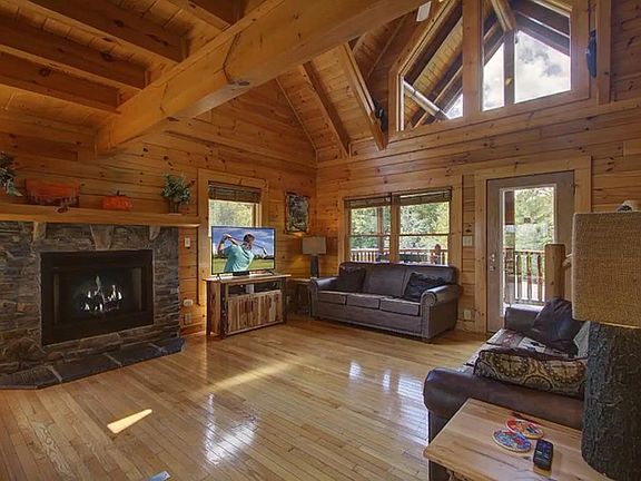 Beautiful! 5 bedroom, 4 bath true log cabin on 3 levels. A true turn-key investment located in a mountain resort convenient to the Parkway in Pigeon Forge and Wears Valley. Interior features Cathedral ceilings in the living room with large peak windows, rec room with arcade system and a pool table, and a spacious loft with extra entertainment/sleeping area. Grand master BR is located on the top floor and has it's own private fireplace and Jacuzzi. A large back deck with rocking chairs and a spacious bubbling hot tub. the recent updates withing few years include fresh staining, new carpets, new tile in the kitchen and bath, new furniture, bedding and more. Comes fully furnished, and sleeps 15 on overnight rental program. The same size cabins in this resort are producing 100K-130K Gross a Year
