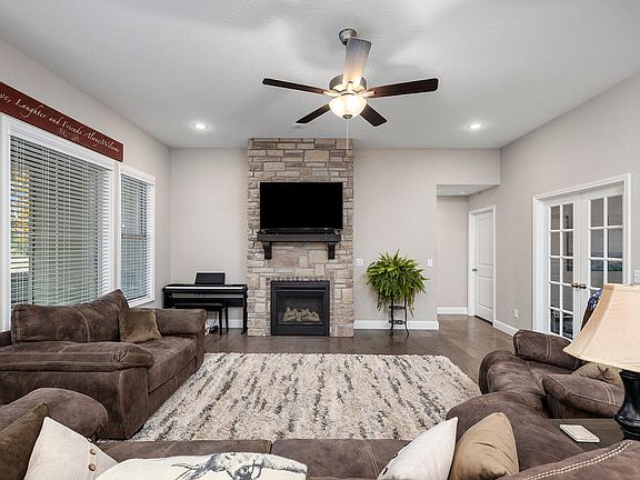 Beautiful open floor plan home in Nixa! You will love the oversized island and pantry in the eat-in kitchen that is perfect for entertaining. This home also features 10-foot ceilings in the main living areas and a cozy, fireplace. The oversized laundry room is accessible from both the primary bedroom closet and the hall, making it easy to keep up with laundry day. The large primary bath features a doorless, walk-in shower and plenty of space for everyone to get ready in the morning. The office french doors provide a quiet place to work or study. The functional split bedroom floorplan also has two bedrooms and a second bath on the main level. But that's not all -- if you need more space, there's an additional 559 square feet on the upstairs level that could be a very spacious bedroom or bonus room with its own full bath. The fully fenced backyard feels private with no homes directly behind you. Don't wait any longer - come see this home today!