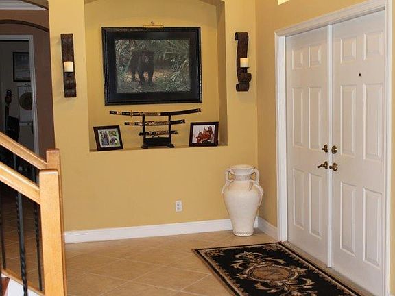 View this exquisite 5 bedroom 4 full baths and 3 car garage home located on a corner over sized lot, Located in a 24 Hr. Manned Gated Community with all Amenities and, Wellington's "A" rated schools. Enter through its double door entry with a beautiful and impressive circular style staircase and volume ceilings. The 3072 square feet, is all Ceramic Tile and laminated Wood Floors throughout. Your customer will love this well cared for newly painted home. It's spacious rooms with family room off of the kitchen and crown molding adds character to this open and airy home. Every room has ceiling fan and bathrooms adjacent to the bedrooms. The 5th bedroom ON THE FIRST FLOOR can be a maid or mother-in-law suite with its own full bath and separate garage entry.