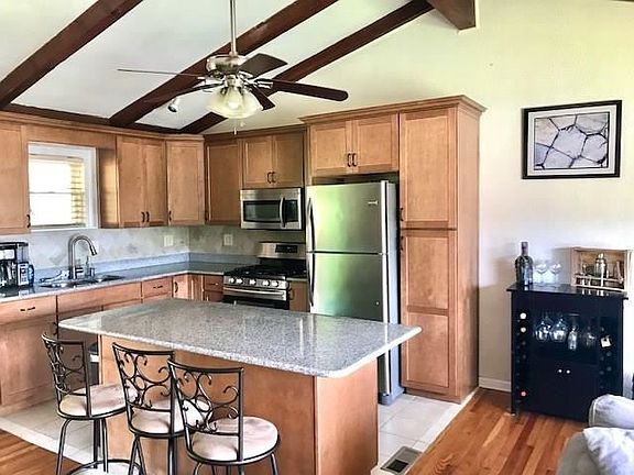 ONE OF A KIND! Fabulous open concept living room / dining room / kitchen combination with vaulted beamed ceiling! Kitchen has granite counters, island, stainless appliances, soft-close cabinets, and under cabinet lighting. New central air. Newer furnace. Beautifully landscaped backyard with deck and patio is totally fenced and is a gardener's dream. Great space for entertaining. Third bedroom is currently used as a family room. New electric fireplace and mantel. Newer windows. New cement driveway easily fits 4-6 cars. New Versa-lok retaining wall. New motorized custom blind in living room. Storage room in basement could be gameroom. Fantastic location near shopping, airport, etc. Totally updated, move-in condition!