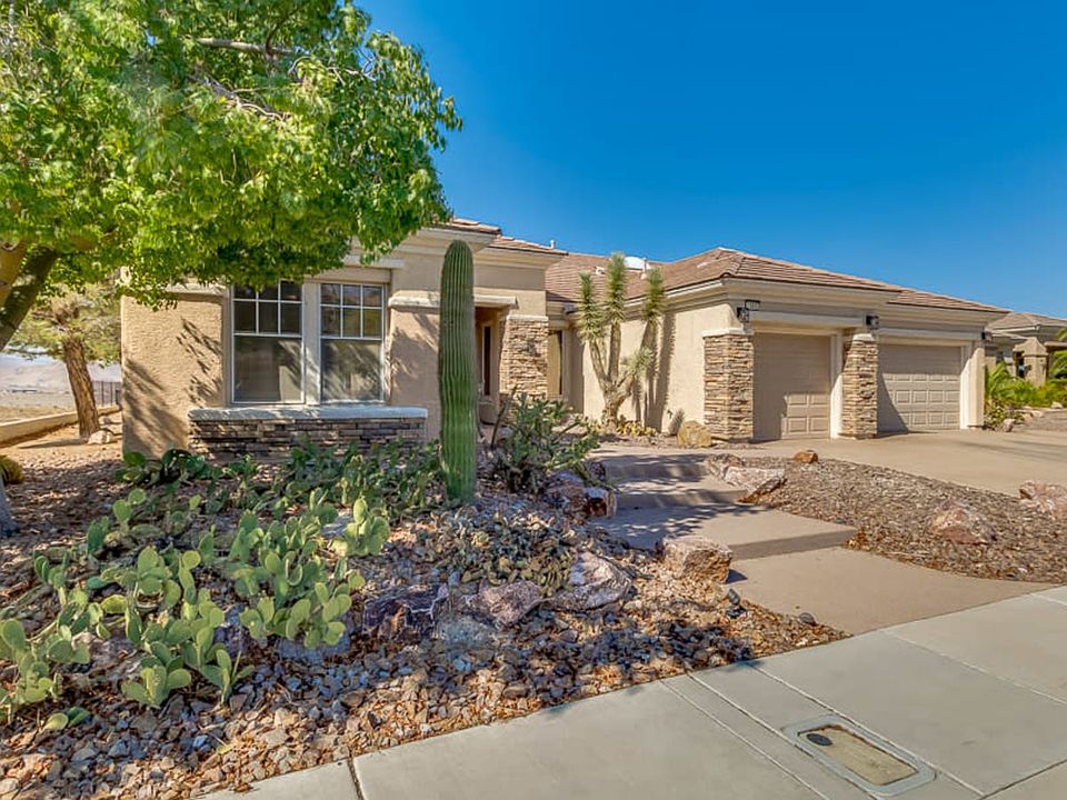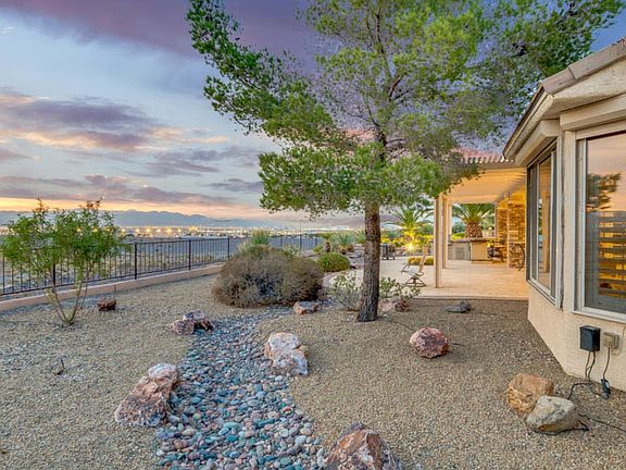 Mountain and Strip views extra large patio with outdoor kitchen. Two bay windows, two bedrooms and den. Wet bar in great room w/ fireplace 2.5 baths. Garage has a separate cooling system. Two A/C units in home.
