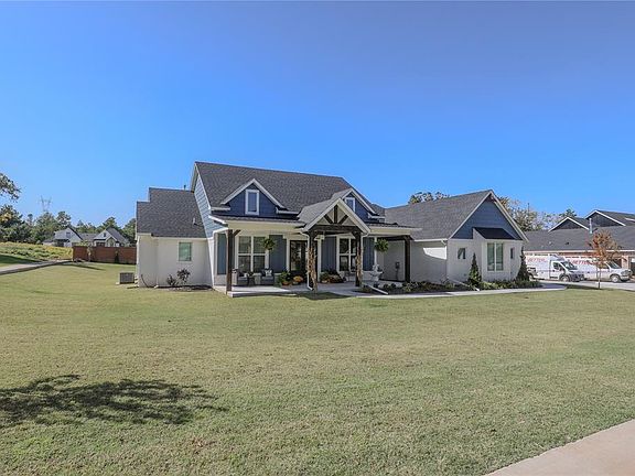 This luxury home is MOVE IN READY!!! Like brand new with custom blinds, 4-6 person storm shelter, fencing and even an additional 9x24 feet of extended driveway for those easy exits. You don't want to miss this beautiful 3 bed, 2 1/2 bath, 3 car in the Choctaw-Nicoma Park School district. Gated community and conveniently located to the Kilpatrick Turnpike, Tinker Air Force Base and so much more. Open concept with vaulted ceilings, stunning beams and flows amazingly to the kitchen area. Granite counter tops in kitchen with walk-in pantry, 5 cook top gas stove and stunning view from the French doors and large windows leading to the awesome covered patio for those nice relaxing evenings . Huge walk-in closet in primary suite with built-ins and tons of storage area. Spa like bathroom with quartz countertops, gorgeous tile and walk-in shower. DON'T MISS THIS AMAZING CUSTOM HOME, BOOK YOUR PRIVATE SHOWING TODAY!!!!