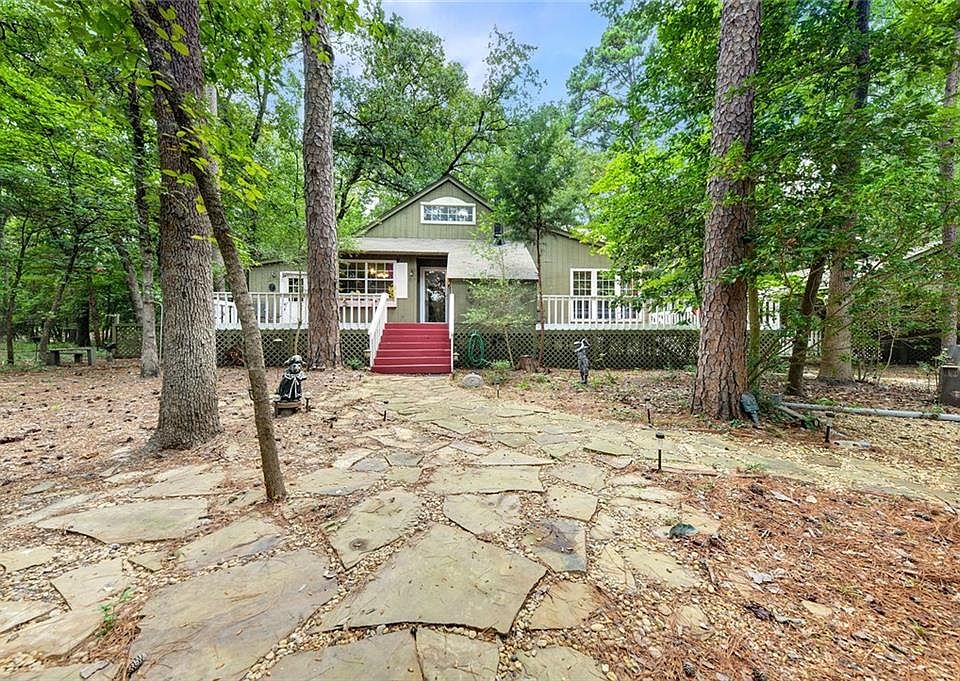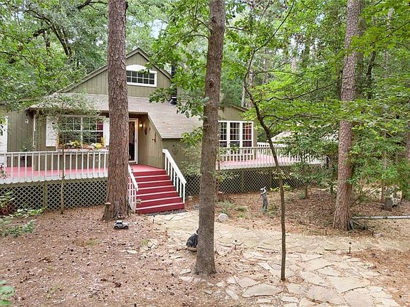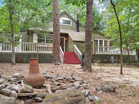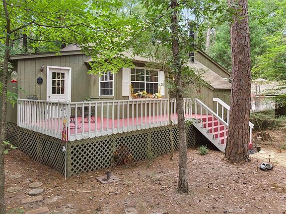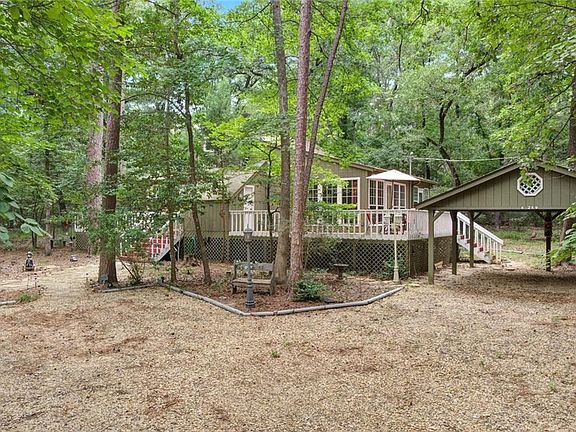 Wooded bliss in resort community! 2 bedroom, 1 bath home sits on .5 acre corner lot set back from the street in a beautifully peaceful setting. Open concept kitchen, dining and living with attached sunroom overlooking lovely yard. Master bedroom has private office or sunroom with private exit to side yard. Watch the deer roam and fully enjoy the natural beauty of Holly Lake Ranch from the expansive deck or sunroom. Plenty of storage in the 2 attached storerooms. Roof on home replaced 2017, carport roof 2019. Furnishings negotiable. Holly Lake Ranch is a gated community, 24-7 on-site security, lakes, 18-hole golf course, swimming pools, tennis, pickleball, fitness center and much more.