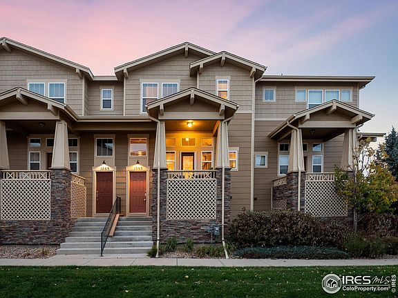 Stunning like-new SW Longmont Townhome in desirable Renaissance subdivision. Freshly styled with new designer paint, window coverings & light fixtures throughout. Two bedrooms, the gorgeous en suite primary bedroom and a study easily convertible to a 3rd bedroom with pretty mountain-top views are upstairs. The delightful kitchen and dining areas feature newly painted cabinets, built in shelving & the perfect office nook complete with desk and plenty of storage drawers. The spacious living area opens on to a delightful covered patio - perfect for morning coffee and afternoon happy hour. With an attached 2 car garage (new garage door) and sizable storage room; a location adjacent to trails, near parks and schools and an easy commute to Boulder - this is the one you have been looking for!