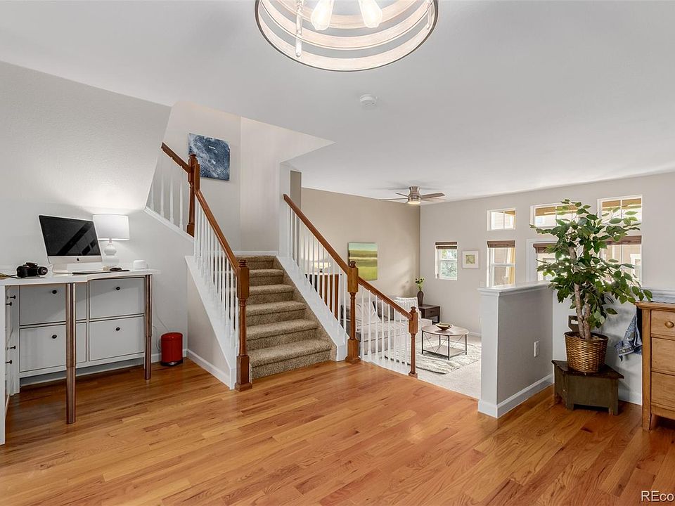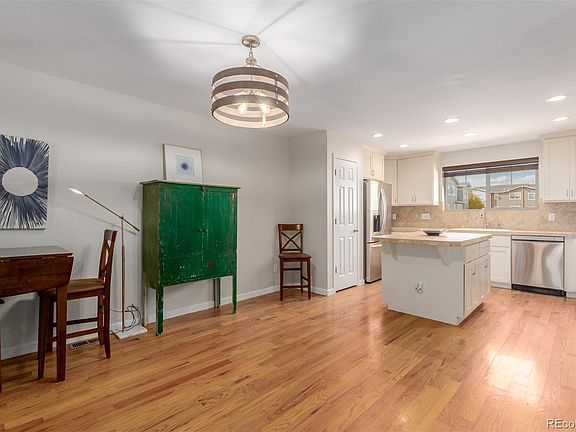 Welcome to this beautifully upgraded Kingsbridge townhome in highly desirable SW Longmont, where natural light and contemporary design create a bright, comfortable living space. This airy, open-concept home features high ceilings, spacious living and dining areas, and a graceful staircase that allows light to flow freely throughout. The pleasing kitchen includes recent stainless steel appliances, abundant counter space, and well-designed cabinetry. A tucked away laundry area with newer W/D and extra shelving adds convenience and functionality.