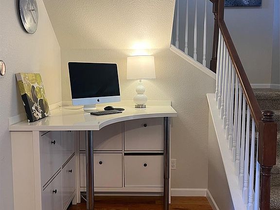 Upstairs, the primary en suite bedroom welcomes the morning sun, while the second bedroom and flexible bonus room—ideal for a home office, workout space, or potential 3rd bedroom—offer partial views of Long’s Peak and the foothills. Contemporary lighting, window blinds, and fresh, neutral tones bring comfort and style to every room. Step outside to a welcoming deck and enjoy the peaceful surroundings. Access a beautiful greenway for walking and biking just steps from your door. An oversized two-car garage provides ample space for vehicles and gear, and the above-ground crawl space offers easy-access storage. The Kingsbridge HOA covers trash, recycling, water, sewer, roof and exterior maintenance and insurance, landscaping, and snow removal—so you can relax and enjoy low-maintenance living just 15 minutes from Boulder.