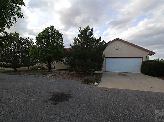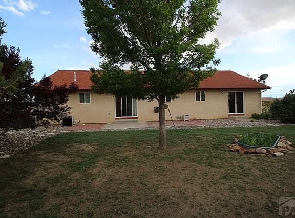 Nice home with close access to miles of equestrian and walking easements. Located in the western portion of Pueblo West this home provides easy access to HWY 50, Penrose, Colorado Springs, and Fort Carson. Spacious floor plan ready for move in! New carpet and paint inside. New stainless steel appliances. Garage is big enough for 2 cars plus a workshop area, motorcycle or toy storage. You will love the mature trees!! Paved road all the way to the house and no neighbors in back. The master bedroom has a walkout to the backyard!