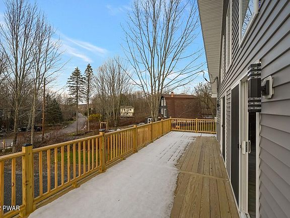 COMPLETELY FINISHED NEW CONSTRUCTION in a four-season amenity filled community in Northern Poconos, just 2 hours from the NYC, NJ and Philadelphia Areas. Vinyl sided chalet style home on oversized .70 acre lot with 3 finished levels, 5 bedrooms, 4 beautiful bathrooms with tile. Great room with high ceilings, corner gas fireplace with floor to ceiling stacked stone fireplace, laminate flooring, kitchen island. Primary bedroom with private bathroom and walk-in-closet on the main level. 2nd level will have a private bathroom, 2 bedrooms and a loft area overlooking the living room. Walk-out lower level with recreation room, utility room, 5th bedroom. Large wrap around deck, nice level driveway, Tankless Hot Water. Built-in garage. Close proximity to Roamingwood Park and the Marina. Home has not been assessed for tax purposes yet. The community offers a fun lifestyle and is loaded with amenities, social clubs, activities, day camp for kids. It is a four season, Gold Star Gated Community with many amenities and planned activities and 24 Hour Security. There are several lakes which offer boating, fishing and sandy beaches. There are two heated pools, a kiddie pool, numerous tennis courts, basketball courts and ball fields. The golf course has a clubhouse with a full service restaurant and entertainment. There's a recreation center with a well-equipped gym, scheduled fitness classes, a game room with billiard and other table games. There's a woodworking building nearby too. At the main lake, there's a main lodge, a cafe and tiki bar open in the summer, an art center, and a ski hill/tubing area. There are events and activities for all ages! Fourth of July fireworks, and bus trips to casinos, antiquing and NYC. The Hideout has its own water and sewer utility. The Hideout is located about 15 minutes from both Honesdale and Hawley, where there is fine dining, shopping, recreation and medical care. Scranton is approximately 20 minutes away with even more choices, as well as an airport, The Yankees Minor League Team, Montage Mountain with water park and concerts in the summer and a ski resort in the winter.