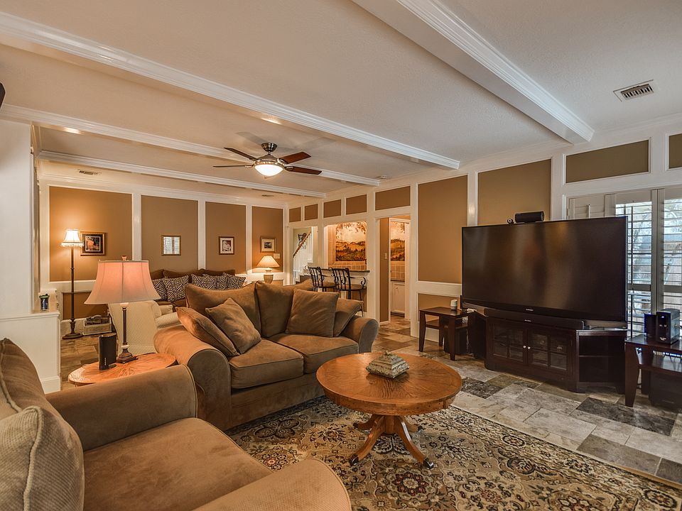 Very appealing curb appeal!! cul de sac location, Klein schools nearby, heated pool and tons of living space. Master suite on lower level; spacious master bath with wall of updated cabinets, two walk in closets and walk in shower, dual sinks. The tiled kitchen is delightful with updates of quality granite counters, island with gas cooktop, recent dishwasher, built in oven and micro, beautifully updated soft closing cabinets, drawers, lazy susan, every convenience. Large breakfast window overlooks backyard & covered porch. Large utility room with sink, cabinets & tiled for convenience & half bath. Living room/Den is very generous with but-ins, gas log fireplace, tiled floors and bar with granite counters. Gigantic game room up; 3 generous bedrooms plus 2 full baths up. Backyard has loads of room for children/pets plus gunite heated pool with slide & recently replaced heater. Mosquito misting system. Comes with a Residential Home Warranty. Low propery taxes. Home DID NOT FLOOD.