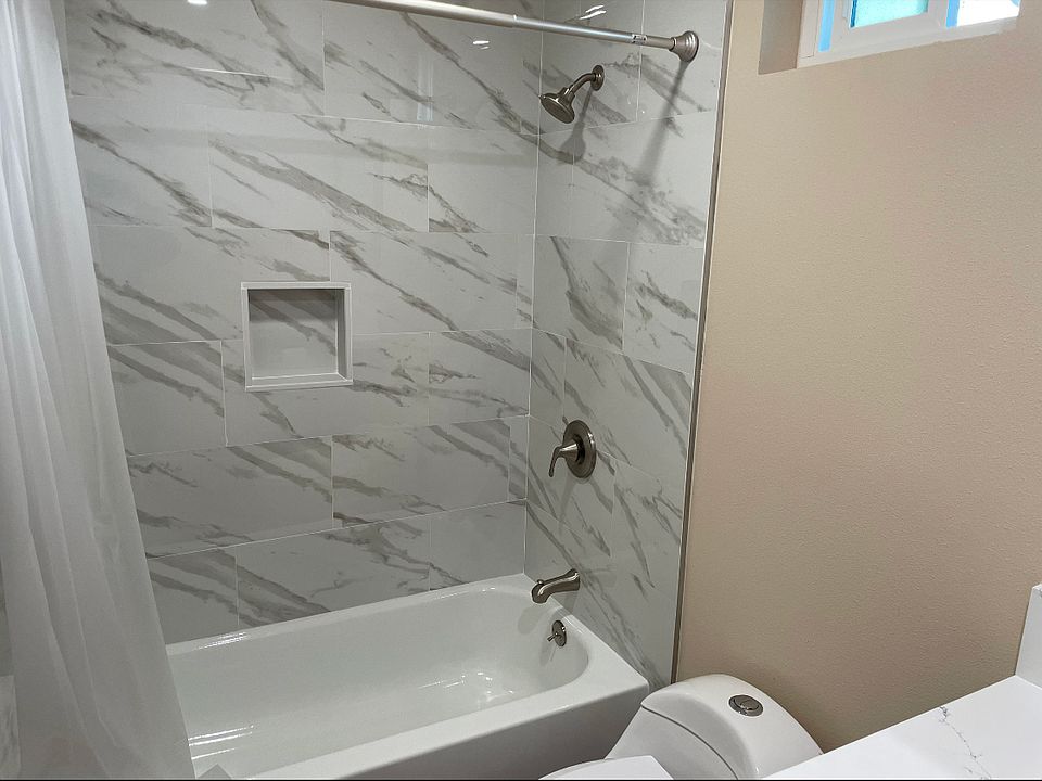 Totally remdeled . New kitchen bath, floors windows . Recessed lighting. Walk in closet . Walking distance to park, harbour , wetlands and beach. Large private patio snd garage Renter responsible for electric and gas. Month to month