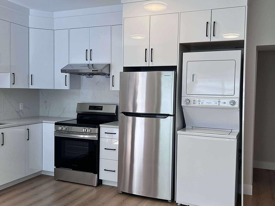 Brand New 2-Bedroom Basement Suite for Rent Never Lived In! Be the very first to move into this beautifully finished 2 bedroom suite with large windows that welcome abundant natural sunlight into the living room. Property Features Brand new never occupied 2 bright & spacious bedrooms with full-size windows Large modern kitchen with sleek cabinetry & full appliances Beautiful contemporary washroom with quality finishes Separate entrance for your privacy Above-ground layout feels like a main floor, not a typical basement Located in a quiet, family-friendly and convenient area close to shops, restaurants, parks & schools * Street parking * En-suite laundry (not shared!) * AC Air Conditioning No pets allowed Non-smoking