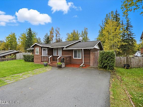 Rare 4 bedroom ranch in the heart of Eagle River. Close to parks, trails, shopping and a great commuting location to JBER. This property has a large, fenced backyard that boasts 3 sheds for storing all your Alaskan toys! Inside offers an arctic entry as you walk in, leading to an open concept living room and kitchen. Enjoy the spacious kitchen with tons of storage and pantry.The master suite had two closets and a private bathroom. Additional features: -New paint throughout -Stainless Steel appliances -Covered back porch (not affixed to home) -Mountain views -New water heater -Newer LVP flooring -Shed ready for electricity hookup -Mature lawn