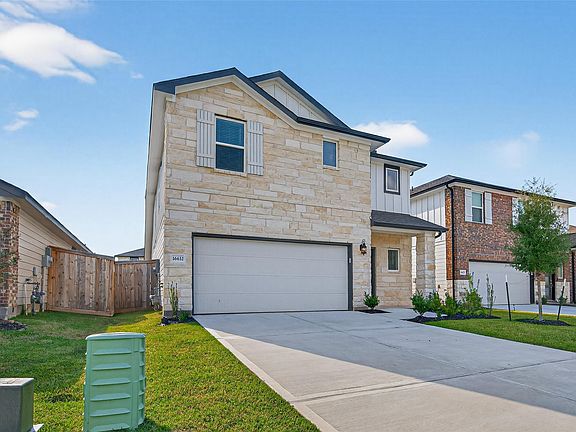 Welcome to 16632 Sterling Cliff Street, a stunning two-story home in the vibrant Mavera community featuring an open-concept design with soaring ceilings, extensive LVP flooring, 4 spacious bedrooms, 2.5 baths, and a covered rear patio perfect for outdoor living. The chef-inspired kitchen is equipped with stainless steel appliances, white shaker cabinetry with modern hardware, quartz countertops, and a large center island with seating that flows seamlessly into the dining and living areas, ideal for entertaining and family gatherings. The private owner’s suite offers a generous walk-in closet, soaking tub, separate shower, and dual-sink vanity, while outside you can enjoy the covered patio overlooking the oversized backyard. Directly across the street is a pocket park, just one of many community amenities including a resort-style pool, splash zone, cabanas, and walking trails, with exciting additions coming soon such as pickleball courts, a wiffle ball field, and an outdoor biergarten.