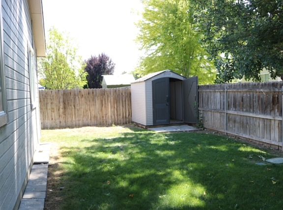2003 Built ranch style home on .142 Acre lot with mature trees and bushes. Double garage with automatic g/d opener, covered patio, fenced back yard, storage shed. Caldwell Municipal irrigation district paid by owner with automatic sprinklers. Vallivue school district. Vaulted ceilings, walk in closet, pantry. Forced air natural gas heat, central AC, Range, Refer, Microwave, Disposal, Washing machine, Dryer.