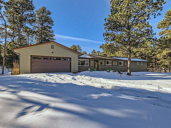 Beautiful country living on 4.75 acres of towering ponderosas in northern Black Forest. Nestled at the end of a cul-de-sac, this totally remodeled and updated ranch home is totally turnkey and ready to go! Featuring three bedrooms with a gorgeous master retreat, one secondary is an ensuite plus hand scraped wood floors, luxury vinyl, new kitchen and bathrooms! Plus a 500+ sf enclosed, four season sunroom with amazing views to the property and luxury vinyl floors. Quiet and serene, this home also features a brick fireplace plus pellet stove, fresh paint, granite counters, 2022 Generac generator, plus covered outside deck, complete landscaping, an oversized two car garage with an additional one car (12x20)garage/shop/multi use outbuilding with reinforced back for trucks and trailers, additional shed, and four stall barn with overhang, water/electric. Other features are a fully insulated crawl space, new hot water heater and furnace, new windows with the exception of the master and sunroom, and new roof. NO EXPENSE SPARED HERE!! The property is fenced and cross fenced with 6 fenced areas, two paddocks, with access off of High Tree and a gated back driveways directly to Hodgen. The land is just beautiful and with some of the most gorgeous, old growth trees in the Forest. Easy access to park and trail riding, Denver or Springs. Extras- All the floors are hardwood except 3 rooms with carpet and LVP in sunroom. Windows in master bedroom were added in 2017 and glass door in 2023 that opens to back covered patio