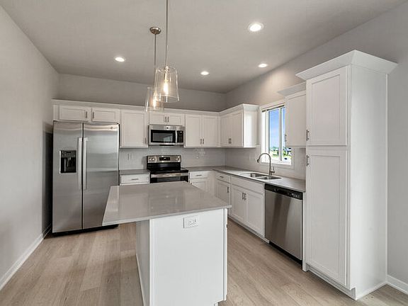 Welcome to Tanzanite Homes' Streamline Boulder plan located on a spacious walkout lot in Urban Ridge. This move-in ready, turnkey home eliminates the stress and expense of renovations or repairs. It allows you to focus on what truly mattersmaking memories in your new home. Step inside and discover the perfect blend of spacious living and style, featuring 3 bedrooms and 2.5 baths to accommodate your needs. The highly functional kitchen offers an abundance of cabinets, generous counter space, and a convenient pantry cabinet, making cooking and meal preparation a breeze. Upstairs, the primary bedroom awaits, complete with a shower and a spacious walk-in closet for your relaxation and convenience. Additionally, there are two more bedrooms, a full bath, and a laundry room, ensuring practicality at every turn. Allowing the beauty of the outdoors to flood your home, numerous windows welcome natural light, creating a warm and inviting ambiance. The primary bath boasts a double bowl vanity, and exquisite quartz countertops grace the entirety of the home. As a bonus, this home comes fully equipped with essential appliances, including a washer, dryer, electric range, refrigerator, dishwasher, and microwave. Blinds on all main windows not on transom windows, staircase windows or in any unfinished areas. Contact us to schedule a showing.
