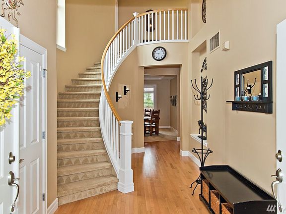 Best lot in Woodside! Gate access to expansive greenbelt makes the backyard feel as if it goes on forever. Neat & tidy yard with all the privacy of open space! Inside, be greeted by a grand entry staircase that leads to the unique upstairs layout with separate master wing. 4 beds or 3 + bonus. Upstairs laundry! Mainfloor features lovely hardwoods, chef's kitchen w/ eating space, gas range, high-end appliances, office built-in & open flow to great room. Quality shutters adorn windows throughout.