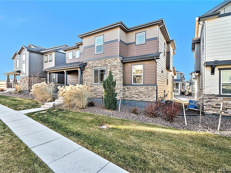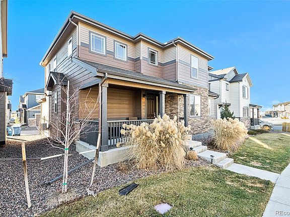 Still in new condition, this 2020 built home has been well cared for and the pride of ownership shows! Beautiful finishes and upgrades throughout the home including granite, large kitchen island, wide stair cases, oversized shower, walk in closets, double vanity, and decorator colors. Outside you will enjoy low maintenance yard with open views at the end of the street as well as a cozy front porch or large back patio, perfect for entertaining and just a moments walk to the park. This three bedroom, three bathroom home with a loft is conveniently located minutes to I-76, E-470, parks, and the Buffalo Run golf course, as well as a short drive to DIA.