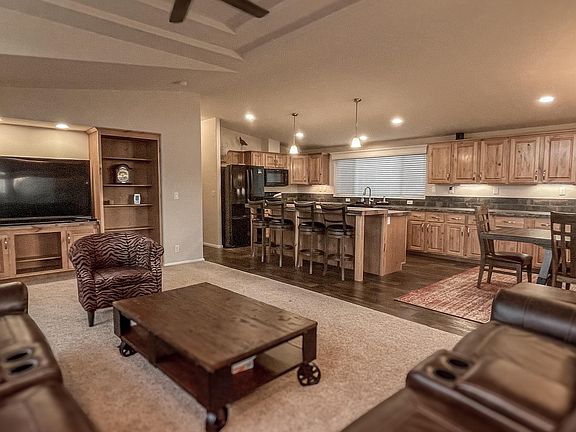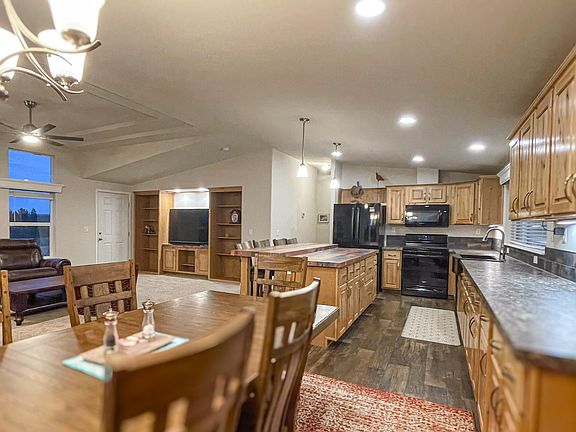 Situated on the SW side of Prineville Lake Acres 2, with close access to 1000s of acres of BLM land, sits this newer manufactured home built with top of the line features and a 36'x48' shop. Shop features large 14' door, two 10' pass through garage doors, 6'' concrete slab floor, side carport, and LED lighting. Property is completely fenced with 4'' wire, keeps the small animals in/out, but still allows the numerous quail to come and flit about. Large gravel circular driveway with plenty of space for parking including two RV hookups, perfect for having friends come visit. Built as a second home, so a backup generator was installed to ensure the home was never without power or heat. Open floor plan in house with built in cabinetry running the length of the kitchen and dinning room and a built in entertainment center in the living room. Spacious primary bedroom with two closets, as well as walk-in closet in the bathroom. Come relax and enjoy the peekaboo views of The Sisters.