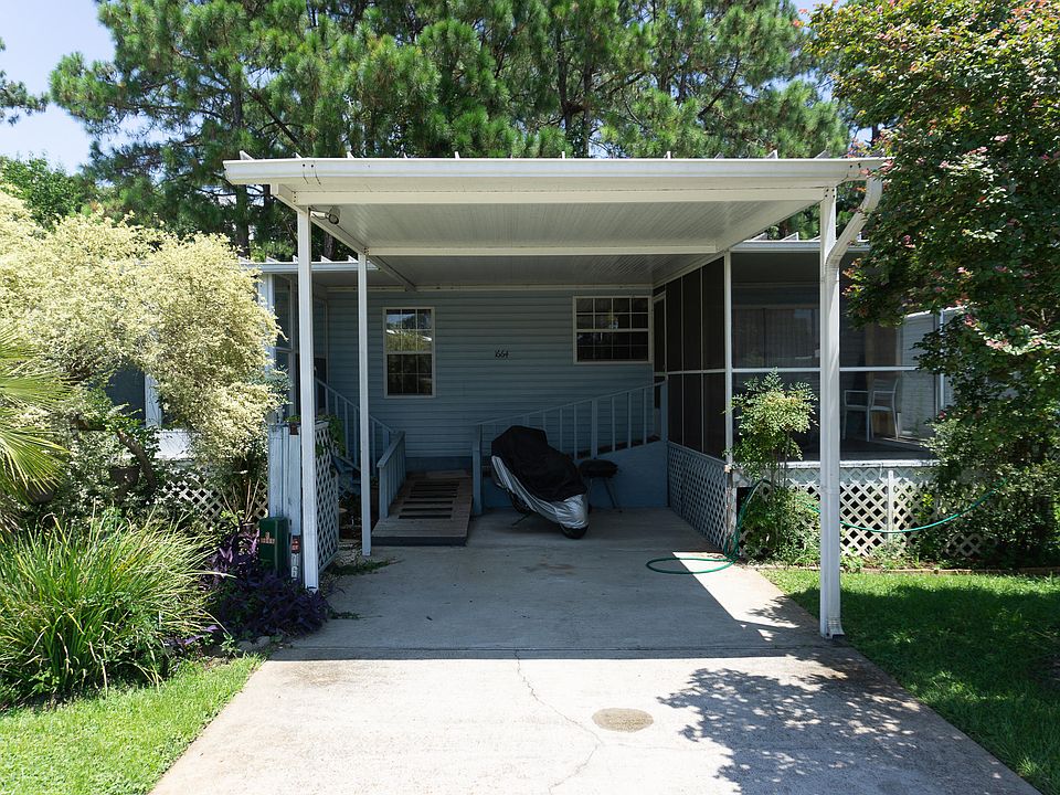 What a nice quaint retirement community that is 55+ to call home. This is a small community that is centrally located close to Panama City Beaches, shopping and much more. The home features 2 bdrm/2 bath's and is approximately 972 sq.ft. Enjoy sitting outside on two spacious front porches or if you enjoy some privacy enjoy sitting on your newly installed deck off the back. Also, you have a clubhouse and a community pool to have get togethers as well. if you have a boat or a trailer they also have storage space available to you. Come and make this this your forever home.