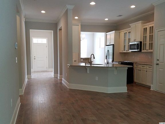 Single-level living on a lot that backs up to protected land in The Estates at Withers Preserve, a Market Common community. The Lockwood is a split bedroom plan, nestled on more than 1/3 of an acre. Enjoy a large open living Kitchen and Family Room with a natural Gas Fireplace. Quality upgrades include Laminate wood flooring in all main living areas; Tile in all bathrooms and laundry room. Kitchen upgrades: Custom Cabinet package, Granite countertops, Glass tile backsplash, Stainless Steel appliances, Gas range and counter-depth side-by-side refrigerator. Additional rooms: Formal Dining and a Breakfast room. Accessible from the Family room, a screened porch with an extended 12 x 14 patio. Bathroom upgrades: Quartz countertops and brushed nickel in all Bathrooms; Luxury tile shower with dual shower heads in the Master Bath. This version of the Lockwood plan also features a complete 4th bedroom / recreation room with a full bath upstairs! Easy maintenance Hardiplank fiber cement exterior siding.