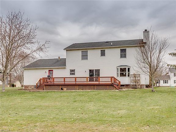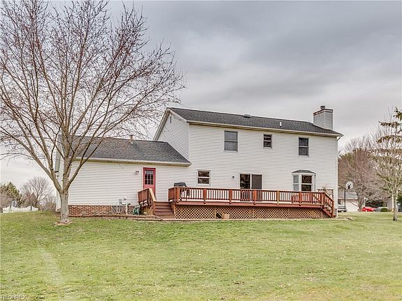 If you have been wanting to move to Lake Township, Springwater Gardens has a colonial on 1.5 acres! Enter into the foyer w/large hall closet and open stairway. Beautiful formal dining room to left & living room to the right. Both have new plush carpet, wide crown molding @ the ceiling & natural light. The large eat in kitchen has granite counter tops, tile backsplash, Kraftmaid cabinets & access to the deck overlooking large backyard. Site lines into great room w/ gas fireplace & brick surround. Beautiful wood mantel, wide crown molding & bay window. Access to the oversized two car garage, w/gas line for heat if desired, is off the kitchen; along w/the half bath and 1st floor large laundry room. Heading upstairs to the large 22 x 13 master bedroom is beautifully done & has new plush carpet. The master bath has 7 x 8 walk in closet. Huge soaker tub, separate shower, large vanity w/ hard surface countertop. Bedroom #2 has large 9 x 9 walk in closet. Bedroom #3 has large double door closet. Both have lots of natural light and new plush carpet. The 2nd bathroom has large double sink vanity with hard surface countertop, tile floor and shower/tub. Wait till you see the pretty lighting and mirrors. The lower level is begging for family fun! Large enough for media area, gaming, an office, whatever meets your needs. The large 1.5 acre lot has a great view of the stream and woods. A large barn in the back for extra storage. Relax on the back deck & call this beautiful colonial yours.