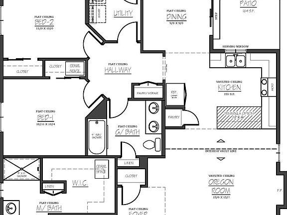 - Master Downstairs, Pantry, Shower/Tub Combo, Double Vanity, Linen Closet, Walk-In Closet(s), Enclosed Toilet(s), Laminate Counters, Open Floorplan, Fiberglass Stall Shower