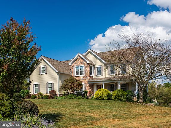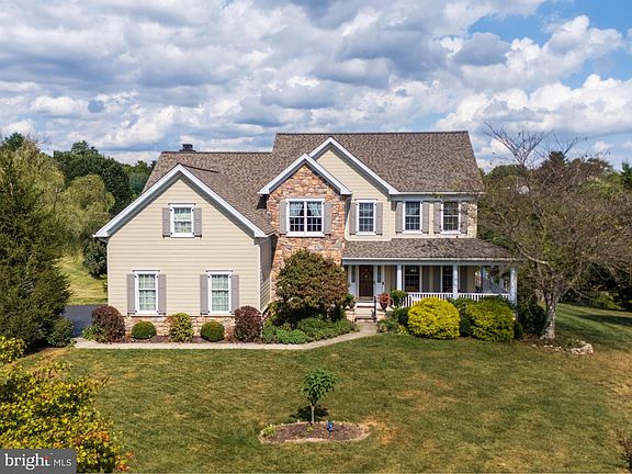West Bradford Beauty in the Heart of Chester County! Located in the highly sought-after Downingtown School District, this elegant home sits in the desirable community of The Estates of Tattersall, bordering the scenic Broad Run Golf Club. Nestled among the rolling hills of Chester County, the property offers stunning views, curb appeal, and timeless charm. The exterior has been fully upgraded , including HardiPlank cement siding, all new window frames, plus recently replaced roof & gutters-ensuring beauty, durability, and peace of mind for years to come. Step onto the wrap-around front porch and into a stately two-story foyer. The formal living and dining rooms flow seamlessly, perfect for entertaining large gatherings. Rich hardwood floors, crown molding, chair rail, and oversized windows add warmth and sophistication. The gourmet kitchen features granite countertops, stainless steel appliances, an island with seating, and a sunny breakfast area that opens to a large rear deck. The kitchen overlooks the inviting family room with vaulted ceiling, back staircase, and wood-burning fireplace with insert. A private office and laundry room complete the first floor. Upstairs, the spacious primary suite includes a sitting area, spa-like en-suite bath, and a huge walk-in closet. Additional 3 bedrooms & Hall Bath provide comfort and flexibility for family and guests. The finished walkout lower level is designed for fun and relaxation, offering recreation, music, gym, bar areas plus separate hobby room. Step outside to the covered patio which leads to a stone pizza oven—perfect for entertaining! The magnificent backyard with sweeping views is both private and peaceful. Located on a quiet cul-de-sac, yet minutes from West Chester Borough and Downingtown, this home offers the best of convenience and tranquility.