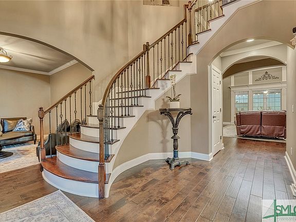 Welcome to this stunning estate in Richmond Hill's premier gated enclave, where luxury knows no bounds. Step into the grandeur of a majestic foyer through double stained glass entry doors with a sweeping curved staircase and refined molding. This opulent home spans 4,647 sq feet and features 5 spacious bedrooms, 4 full baths, powder room, formal living room as well as a full bedroom suite and office downstairs. Towering ceilings adorned with intricate details, expansive kitchen with a center island, and expansive living areas redefine sophistication. Set on 1.1 lush acres with enchanting lagoon and wildlife views, this property also boasts a screened porch, lavish heated pool and hot tub oasis—perfect all year! Complete with a three-car garage, extensive closet space, and access to acclaimed Richmond Hill schools, great amenities, spray foam insulation for efficiency. Not in a mandatory flood zone! Experience the pinnacle of refined living!