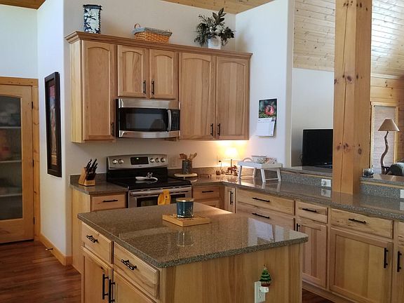 Nearly 1.5 acres backs to National Forest in highly desirable Pine Canyon. Barely Used! Full D-log home cabin, gourmet kitchen w/granite, 42'' hickory cabinets, farm house sink, roll out shelving, wine bar area & under counter lighting. T&G ceilings, floor to ceiling stone fireplace w/ remote controlled fireplace blower for cozy winters. Expansive windows! 2021 complete exterior staining. Master has walk-in closet, marble counters and walk-in shower dual heads w/ custom stained window in master shower. Back TREX deck w/ wrought iron railing front & back recently expanded. Oversized garage, fenced RV gate for storage & low profile trailers. Tankless water heater & water softener. Newer larger slider arcadia doors to back deck. Amazing views of ponderosa pine trees & wild life. Owner agent.