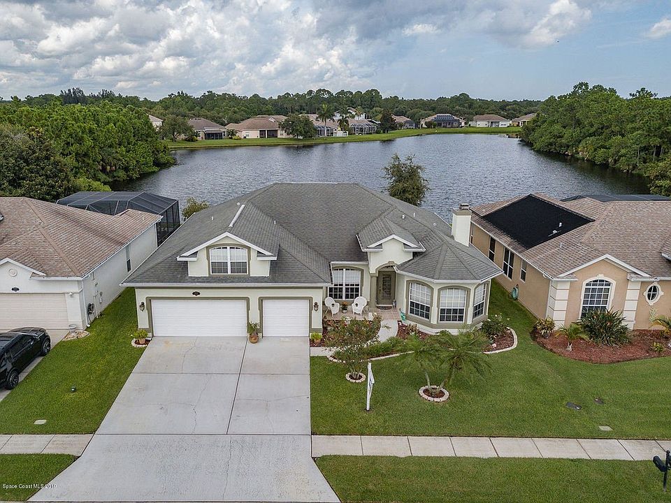 Stunning Waterfront POOL home situated on .19 acres in West Melbourne. This home has the ''WOW'' factor the minute you walk through the front door! This 3BR/2BA offers a flex room w/ a wood-burning fireplace and an upstairs bonus room that you can use as a 4th bedroom or office. Recent upgrades include vinyl plank flooring in the flex room, laminate in bedrooms, exterior paint, HVAC upgraded to a Lenox true variable speed 2.5 yrs ago which cut the bill in half! Smart HW Heater, radiant barrier in attic, inside walls insulated, Ft triple sliders side in the wall to bring the outside in! 10' ceilings w/ Tray ceilings in the dining & master bedroom. The kitchen is spacious w/ pendant lighting, under cabinet lighting, Swann stone sink, Large walk-in pantry & newer Samsung appliances. Fanta
