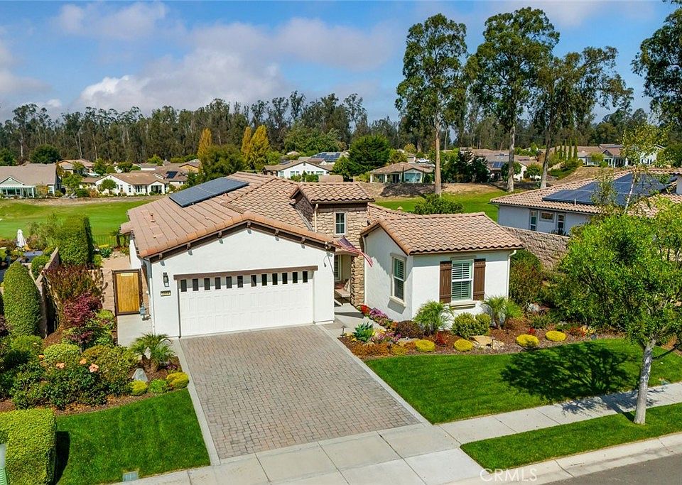 Live life to the fullest in this Monterey 1 solar home, situated on an ultra-premium lot with expansive west facing fairway and lake views on the 13th hole of the prestigious Monarch Dunes Golf Course. You’ll be able to watch the golfers play during the day and enjoy incredible Central Coast sunsets every evening. Built in 2013, with a substantial remodel in 2018, this 2 bedroom, 2 bathroom, plus den home offers 1667 sq.ft. of light and airy open concept living. The main living area features a built-in entertainment system and plenty of windows to take in the magnificent views. The chef’s kitchen is a dream with sleek white cabinetry, gorgeous quartz countertops, custom tile backsplash, stainless appliances including wall oven/microwave, gas cooktop with industrial-style hood, pendant lighting, an extended radius island for casual dining, walk-in pantry and a built-in buffet with glass front upper cabinets - what’s not to love! Adjacent, a delightful dining area awaits with a large bay window and slider to the covered patio - it’s a warm and sunny spot to enjoy your morning coffee before heading out to play pickleball. Wander outside to the stunning backyard - the views are expansive and magnificent, while the covered patio offers the perfect venue for Al-fresco dining with friends and family. Recently, the entire backyard was professionally re-landscaped with colorful shrubs, flowering plants and decorative rock formations, making it not only beautiful, but super easy to maintain. When it’s time to retire in the evenings, head for the private owner’s suite - you’ll love the spacious bedroom with direct access to an extended patio and the incredible views - it’s a great spot for a fire pit or lounge seating. The en-suite bath features dual sinks, large tiled shower with seamless glass enclosure and a walk-in closet. Up front, you’ll discover a 2nd bedroom with full bathroom right next door, a spacious den with French door enclosure (perfect for working from home), a laundry and 2-car garage with epoxy flooring and storage cabinets. Other features include gorgeous oil-rubbed engineered wood flooring, decorative ceiling fans, automated blinds, LED lighting, custom light fixtures and updated landscaping out front, adding to the excellent curb appeal. Best of all, this wonderful home is located in Trilogy Monarch Dunes where everyday is resort living.