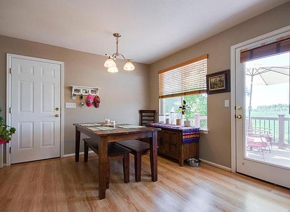 Perfect first home! Open kitchen with amazing views out the south windows. 4 bedrooms all on the upper level plus large loft. Garden level basement ready to finish. Large deck for entertaining and enjoying those great evenings. Picture perfect, waving hay fields border this professional landscaped back yard.