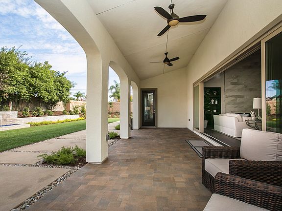 Highly upgraded model home on approximately 1/2 acre homesite. Experience beautiful indoor/outdoor living in this incredibly appointed 4-bedroom residence. Beautiful courtyard entrance with orchard. An expansive loggia at the back of this home invites you to an outdoor kitchen and relaxing water feature with fiber optic lighting for night time enjoyment. Oversized 4-car garage with work area.