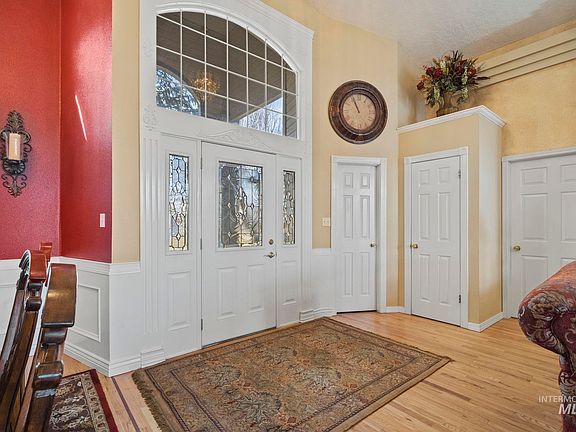 One owner home on just over an acre with shop. Very desirable location in North Nampa in an exceptionally quiet and neighborhood less than 5 minutes from I84, medical, shopping, and CWI. Home features include, grand entry, great room concept with vaulted ceilings, beautiful fireplace and mantel, fully wood wrapped windows, high efficiency HVAC, intercom system, central vacuum, water softener, tile and hardwood floors, large windows, huge master suite with separate walk-in closets, dual vanities, jetted tub and slider to back deck. Property features, corner lot, 960sf shop, full auto sprinklers, large garden space, RV Parking, fruit trees, multiple chicken coops, and no HOA. One section of shop is 24x30 and the other is 12x20 with a 10x12 covered lean to.