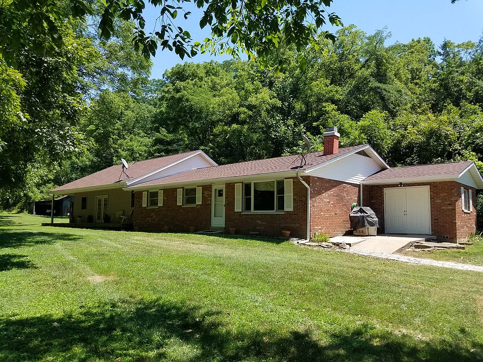 Hunt,Fish-work on your vehicle in this 3bdrm, 2 full bath Ranch on 9.91 Acres w/Creek Access. Walkout basement. Garage is a 4+ w/1,600 sqft oversized 3 bay with a 10,000 LB 2 post car lift,central air/wood stove heat & 100 AMP electric service. Storage/Livestock Barn (walk in cooler stays & fan unit-cooler door does not stay-goes with seller. Also has partial concrete floor with outside water BiB.