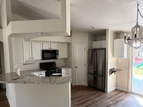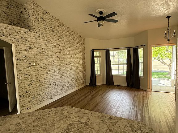 This move-in-ready, single-level home includes 3 bedrooms, 2 bathrooms, and a desirable split-bedroom design is available now for rent. The living room has vaulted ceilings with beautiful chandelier lights, and a ceiling fan. Lovely front pocket windows overlook the lush lawn and inviting covered porch. The home showcases a striking feature wall designed to resemble black-and-white brick. Quality stainless-steel appliances included. Features a 2 car attached garage with abundant storage and dedicated RV parking with a new secure wooden gate. Enjoy a spacious, private fenced backyard featuring a patio with a brand-new, large gazebo; ideal for both relaxing and entertaining. The backyard includes garden beds, a custom red barn shed for storage, and a sturdy wooden playset for children*. It is located in a family-friendly community with a safe and quiet street. It is conveniently located just minutes from I-84, Costco, Target, and the Ford Center. Just around the corner you will find the 28-acre Orah Brandt Park that has new pickleball courts. It's less than a mile from Brich Elementary and the Ridgecrest Golf Course. Renter pays for utilities and maintains yard. *(Playset is optional; free removal if not desired) Renters responsible for all utilities. Up to 2 pets allowed. No smoking inside the house. First month rent and security deposit due at signing.