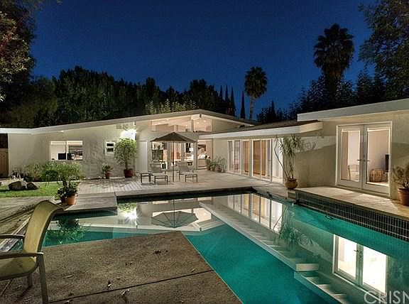 Stunning newly remodeled one level POOL home in Encino, located south of the Boulevard! Private and serene, the beautiful manicured front yard leads to this exquisite modern mid century home! As you walk in the house, see will see a beautiful open floor plan, living room with fireplace and family room with view to the back yard. Modern touches and style, the unique chefs kitchen, features elegant backsplash, self-closing drawers, quartz Carrera counter tops, an abundance of cabinets, and stainless steel appliances .This home is an entertainers dream! Recessed lighting throughout the house. Beautiful light color hardwood floors and new paint throughout the house. 4 beautiful bedrooms. Two of the bedrooms are currently used as office. The romantic master bedroom has doors opening to the back yard. It has luxurious master bathroom with free standing tub, Carrera counter, shower, dual sinks and polished nickel fixtures. House has a convenient laundry area. Entertainers backyard with splendid manicured trees providing total privacy, large sitting area, deck and a beautiful pool. Provides treetop views and lush landscaping. Located on a cul-de-sac and in the highly desired Lanai Elementary School neighborhood. Walking distance to Ventura Blvd and shops. Close to the 101 freeway and 405 freeway.